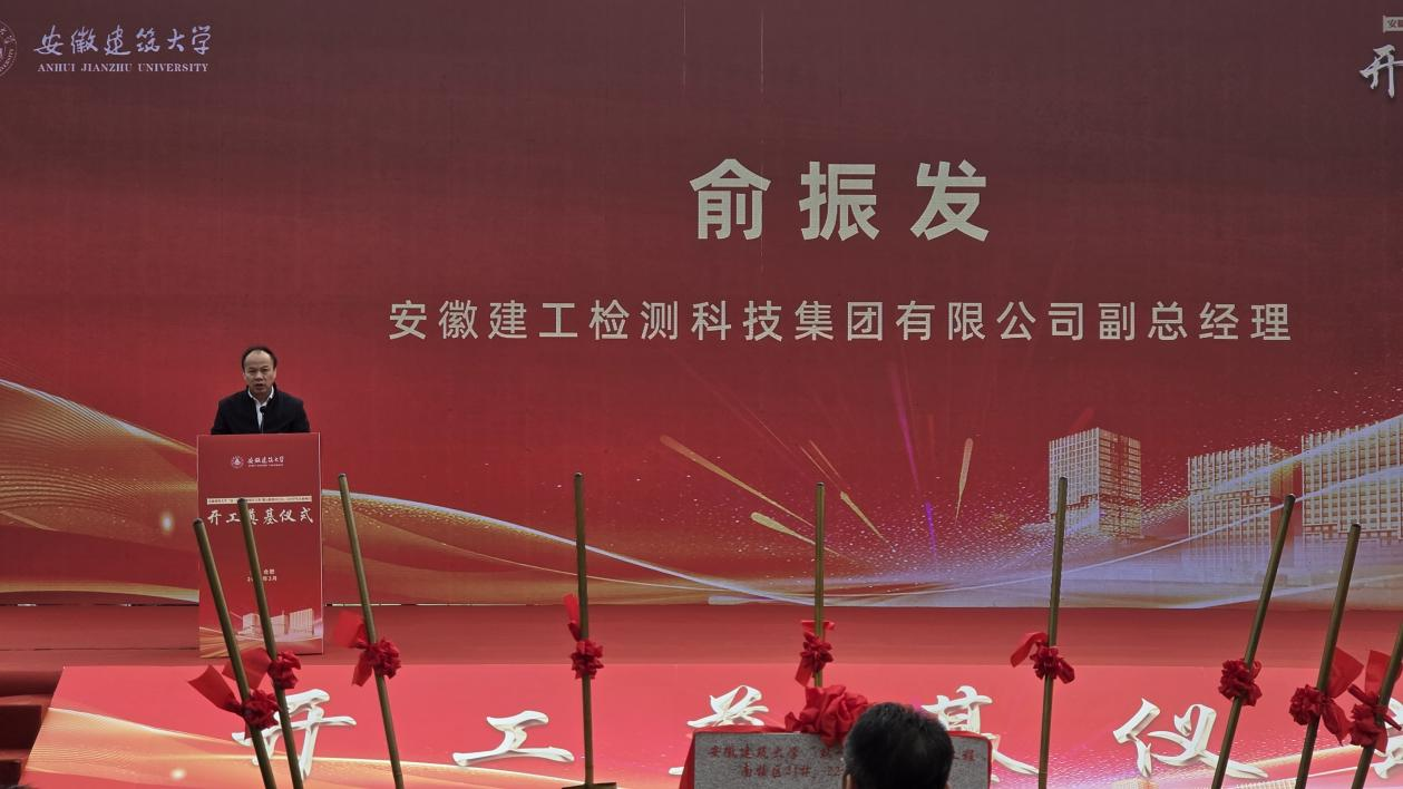 3月20日,安徽建筑大学“双一流”创新提升工程—学生公寓项目开工奠基仪式在该校紫云路校区隆重举行。公司党委委员、副总经理俞振发作为第三方检测单位代表率队出席本次活动,仪式由安徽建筑大学党委副书记、校长蔡国军主持。