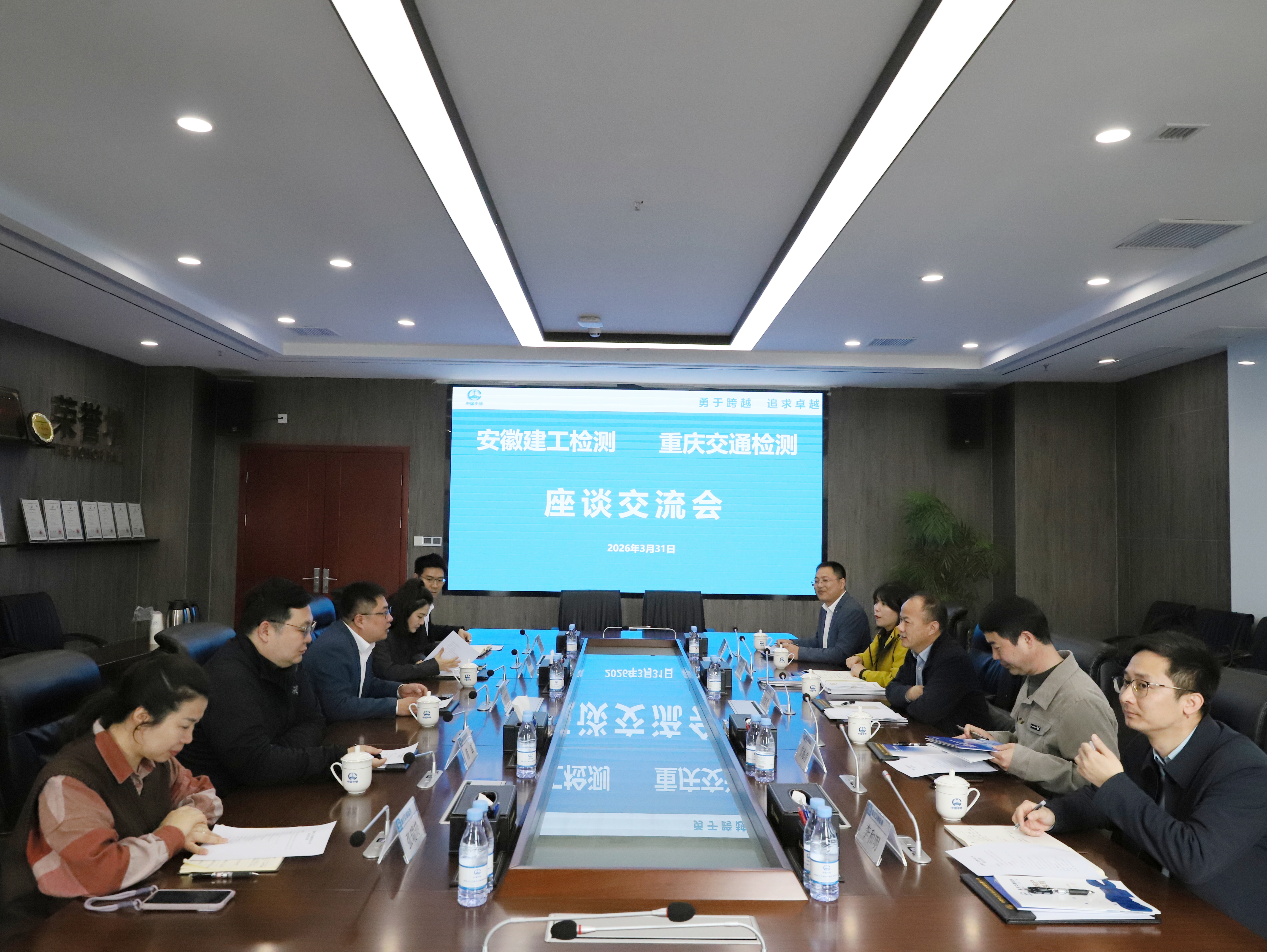 重庆市交通工程质量检测有限公司党支部副书记、总经理唐钰昇,安徽建工集团重庆分公司副总经理、工会主席唐松,相关单位、部门负责同志参加会谈。