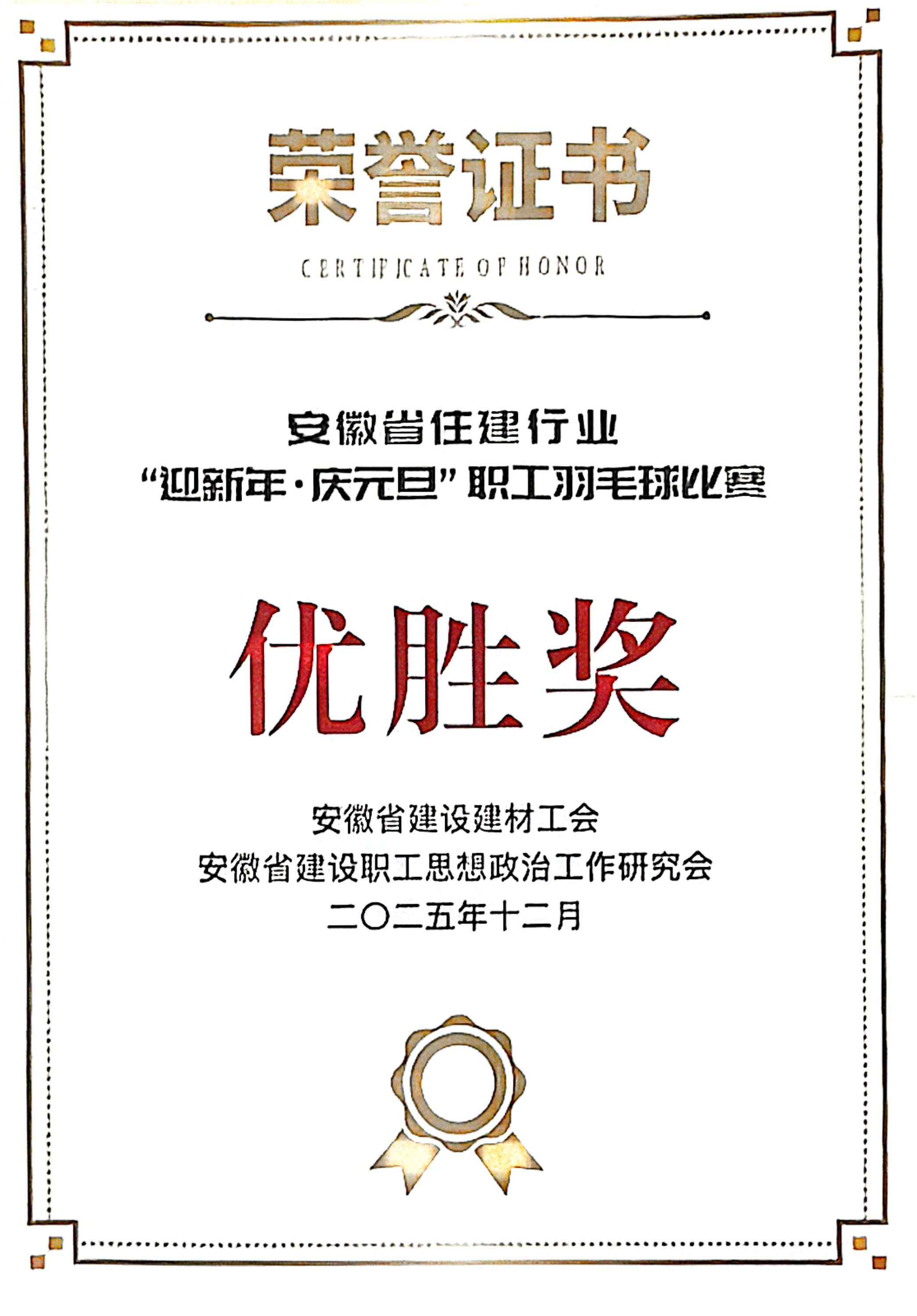 12月28日,2025年安徽省住建行业"迎新年·庆元旦"职工羽毛球比赛圆满收官。建工检测队员们凭借顽强拼搏的体育精神和同心协力的团队斗志成功将优胜奖收入囊中。